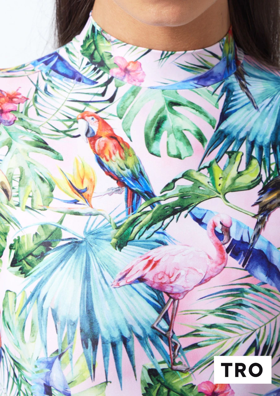 A great long sleeved turtleneck catsuit from Alegra in stunning patterned fabrics. Just what you need for a dance show, foundation for a stage costume, or fancy dress!
