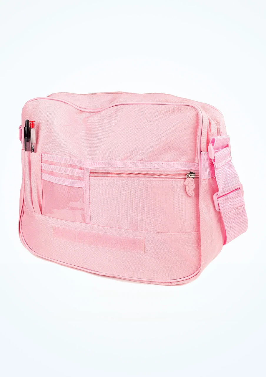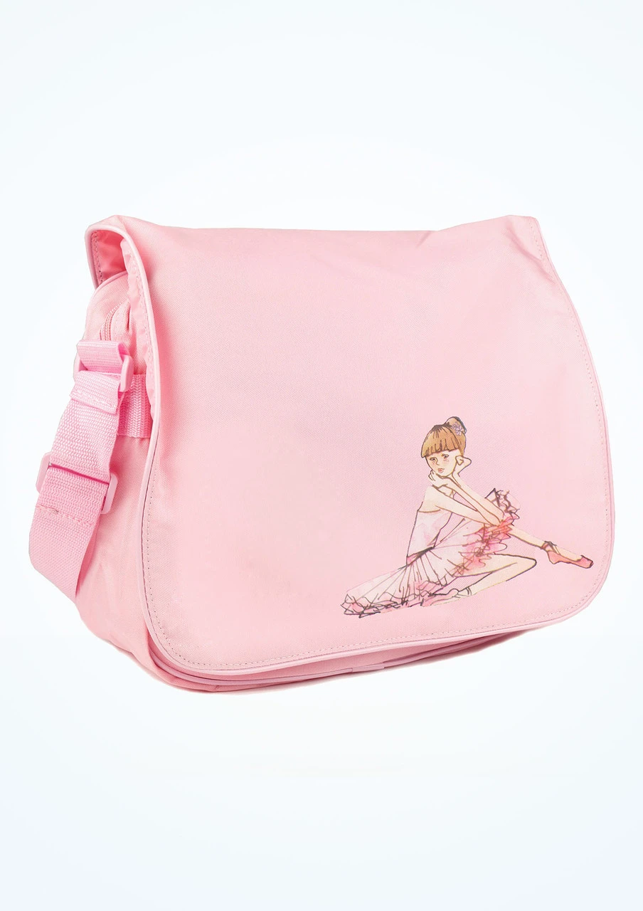 A lovely girl’s shoulder bag from Bloch with ballerina print design. Adjustable shoulder strap and front pockets with zip fastenings.