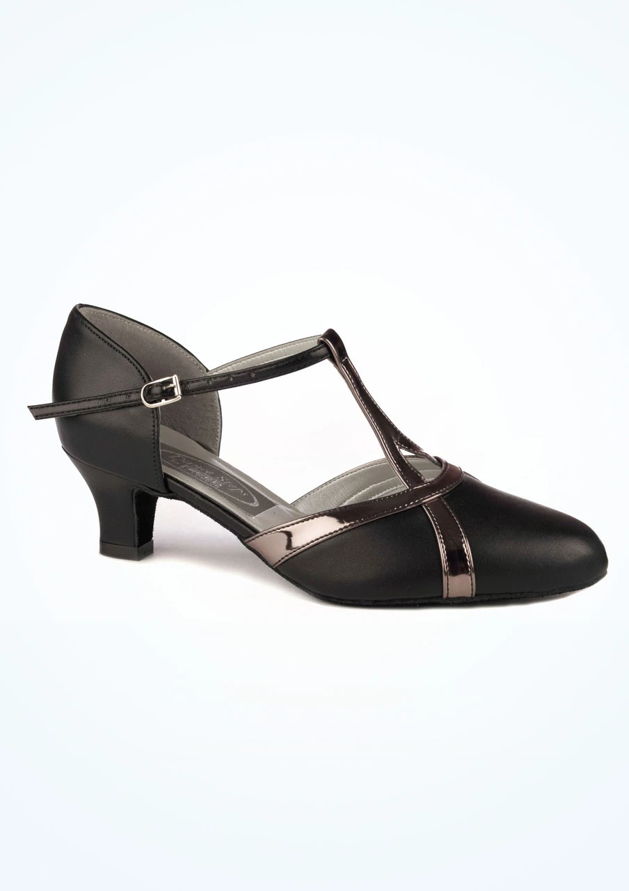 A simple yet stylish new Dancesteps ballroom shoe from Freed of London. This elegant dance shoe featuring a closed toe and T-Bar strap design helps stability of the foot when dancing. Made with a padded insole and flexible sole, ideal for practice of performances.