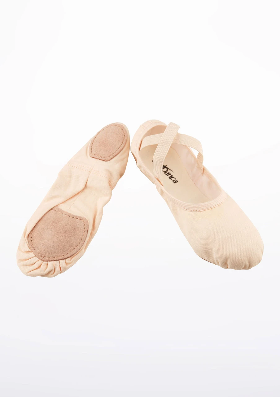 So Danca have designed these pink split sole canvas ballet shoes to be stretchy and flexible. These shoes offer the fit and comfort that a ballet dancer requires in her shoe. The soft elasticised fabric contours the toes and arches, with two crossover elasticated straps to maintain a snug fit. Canvas is a great choice for breathability, they’re quick to dry and quick to put on!