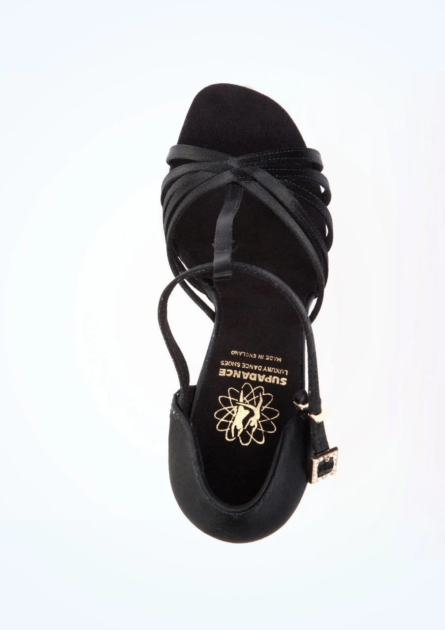 This shoe from Supadance has a T-Bar with a 5 strap vamp. It has a hook fastening and a diamante detail buckle and a 3” flared heel. Great for all types of Ballroom, Latin and Salsa!