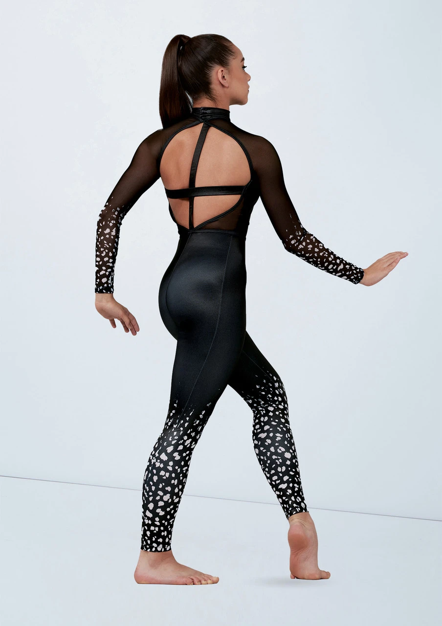 Lustre spandex fade-out animal print unitard