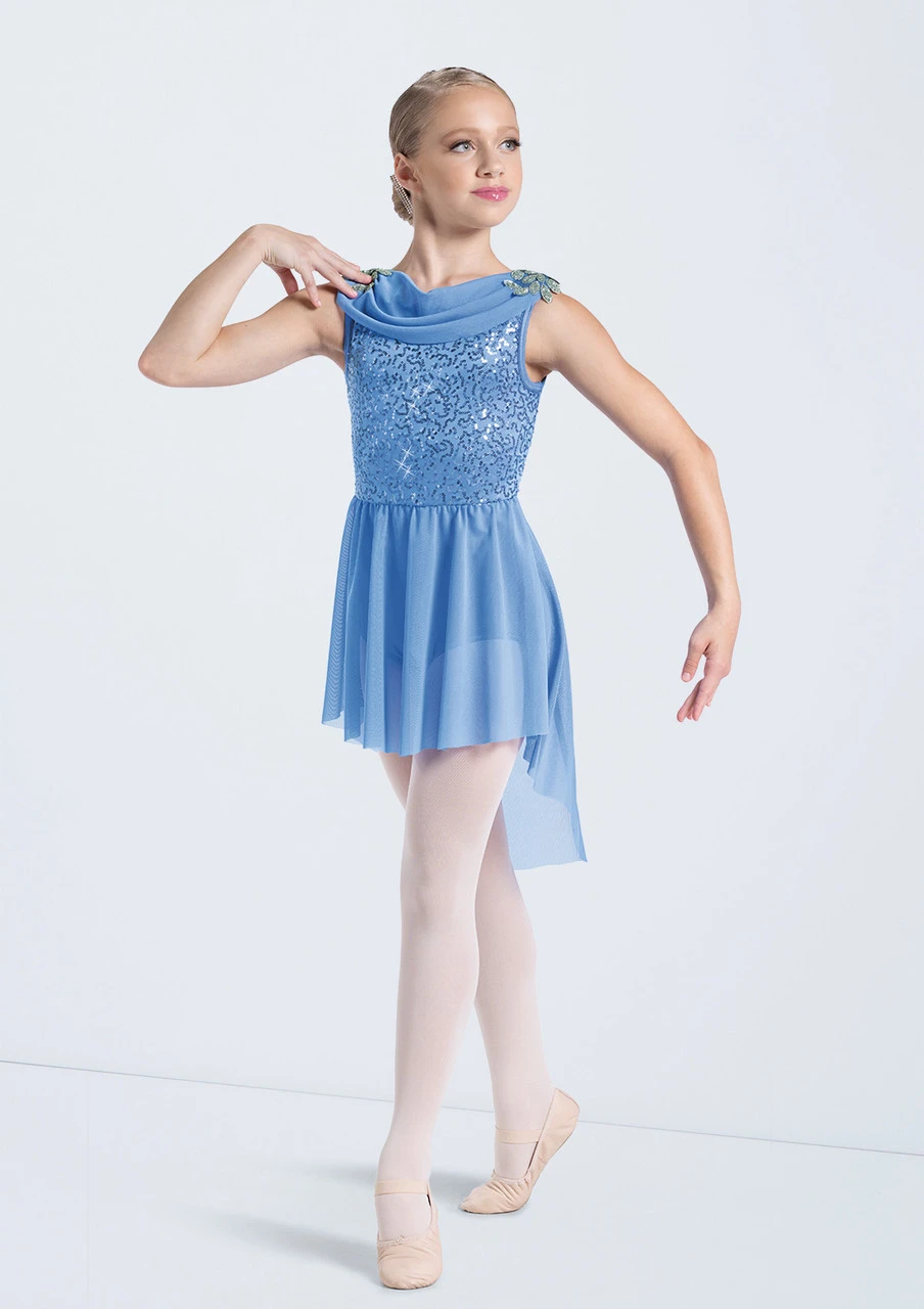 -Sequin spandex bodice and power mesh cowl neck